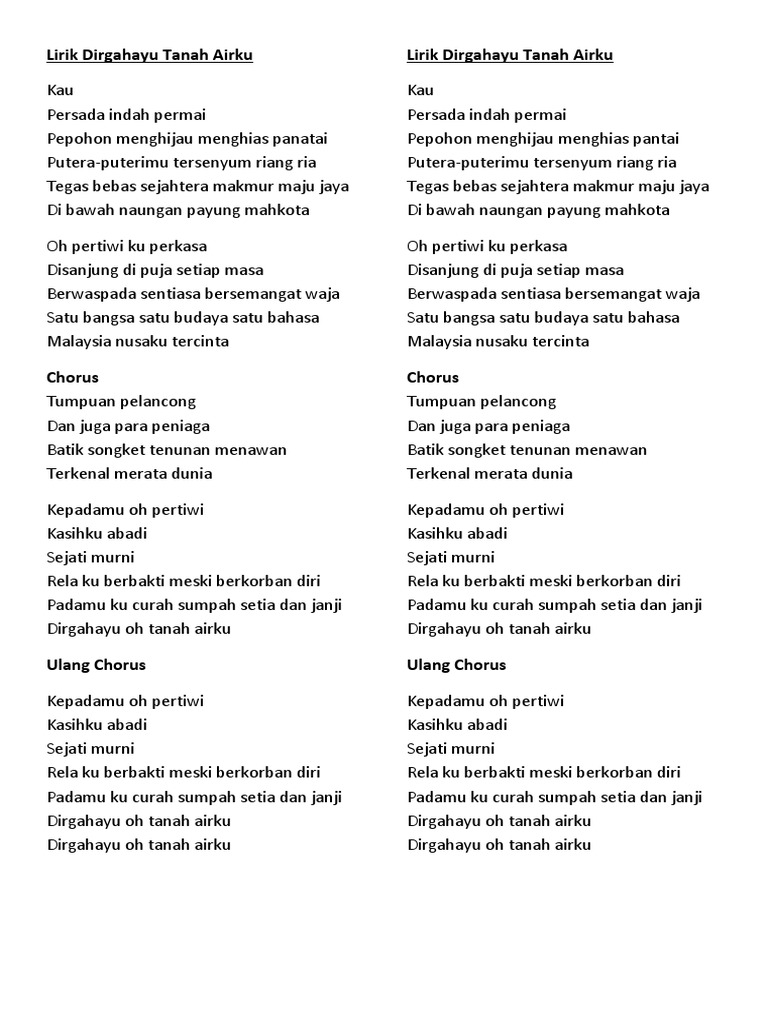Dirgahayu Tanah Airku Lirik Ada Vokal Youtube