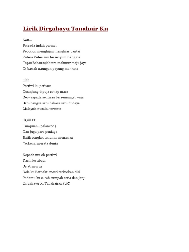 . Selain nadanya yang enak untuk didengar lagu Tanah Airku juga memiliki makna yang sangat dalam saat mendengarkannya. Sutedjo Hari Merdeka Husein Mutahar Himne Kemerdekaan Ibu SoedWiratmo Soekito Himne Guru. Tanah Airku juga termasuk ke dalam National Mandatory Songs yang sangat digemari oleh rakyat Indonesia yang berasal dari semua kalangan mulai dari anak muda hingga orang tua.